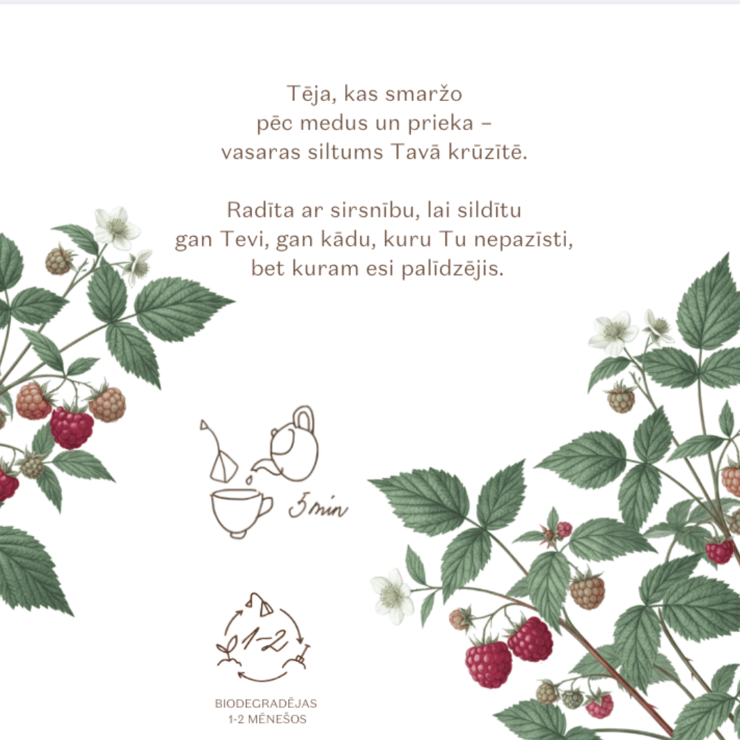 Sastāvs: Meža aveņu lapas, piparmētras, liepziedi, kliņģerītes.